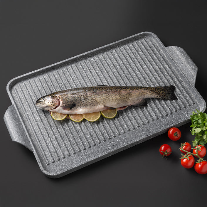 Fusione in lega alimentare a spessori differenziati, rivestimento antiaderente 4 strati rinforzato conforme al contatto con alimenti in accordo al DM 21/03/73 e succ. aggiornamenti al D. Lgs. n°29 del 10/02/2017 e Reg. CE 1935/2004, Reg. CE 1895/2005, Reg. CE 2023/2006, Reg. UE 10/2011, Reg. UE 213/2018 (PFOA, BPA, NICHEL e CADMIO free).